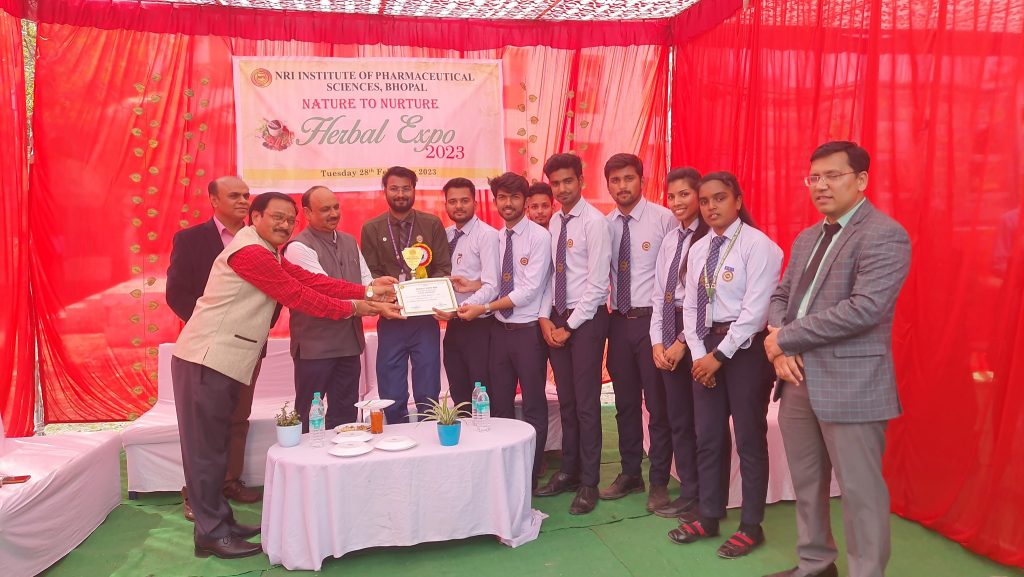 NRI Institute of Pharmaceutical organized herbal expo on 28 Feb 2023 where students displayed and sold the products manufactured in their own labs. 32 Stalls were displayed and products like Herbal hair oils, Herbal face scrub, herbal lip balm, herbal paper soap, herbal energy drink, Herbal Powders, and many more were displayed and marketed. Sanjay K Jain PCI Member, MP State Pharmacy Council, and president IPA was the chief guest on the occasion. Students got an overwhelming response and all products were sold