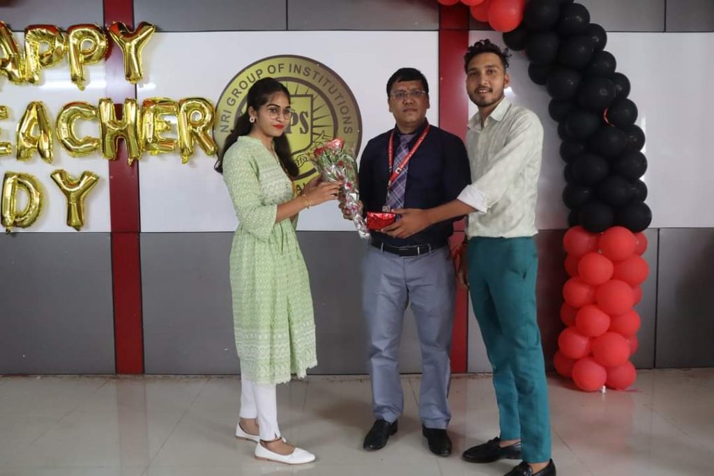 Teachers Day was celebrated in NRI Institute of Pharmaceutical Sciences by the students. The celebration started with the Saraswati puja followed by the lighting of the lamp. Principal Dr Jagdish Rathi paid tribute to Dr. Radhakrishnan on the occasion and thanked all the teachers for their commitment to the teaching field, in his speech, he also gave credit of the institute’s success to the teachers and students. Students planned various games for the teachers and gave beautiful gifts to all teachers.