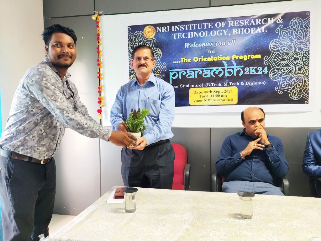 At NRI Institute of Research and Technology, Bhopal, Teachers’ Day was celebrated with great respect, enthusiasm, and joy on [Date]. The event began with a warm welcome and floral tribute to Dr. Radhakrishnan, followed by the lighting of the lamp, symbolizing the light of knowledge and wisdom.